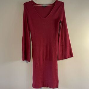 Lulus Jourdaine Berry Red Bell Sleeve Sweater Dress || SZ XS