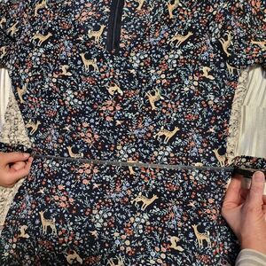 Be the cutest critter around in the Woodland Wonderland Navy Blue Print Long Sleeve Midi Dress! Deer and foxes frolic throughout floral print woven fabric as it forms this enchanting midi dress with a V-neckline, long sleeves with button cuffs, and a tying waist sash. Hidden back zipper/clasp.