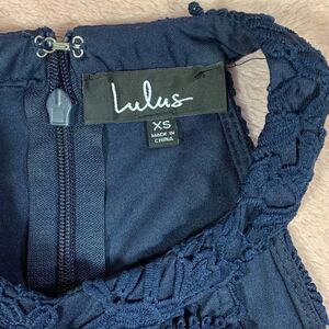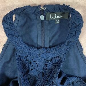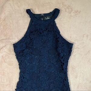 Lulu’s Love Poem Navy Blue Floral Lace Sleeveless Mini Sheath Dress XS