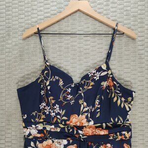 Lulus-My Favorite Day Navy Blue Floral Print Tulip Satin Slip Midi Dress-Sz XL