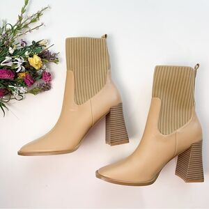 Lulu’s Naynee Camel Square Toe Mid-Calf Boots