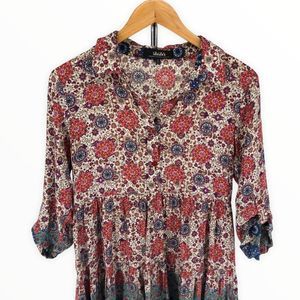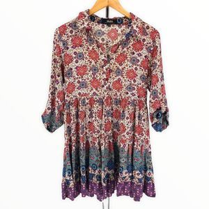 Lulu’s Once and Floral Mixed Print Shirt Dress Roll Tab Sleeves Small
