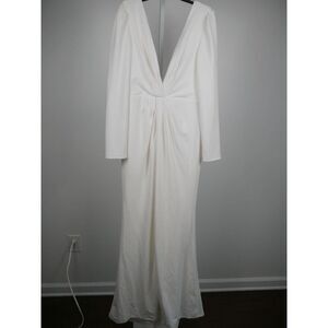 Lulu's Plunge Front White Long Sleeve Gown Long Sleeve Mermaid Maxi Dress XL