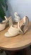 Lulu’s Rahele Cream Corduroy Ankle Strap High Heel Sandals, size 7.5