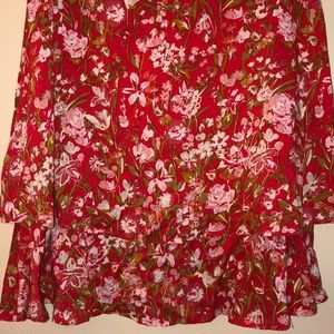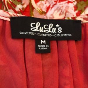 Lulu’s Red Sleeveless Floral Ruffle Dress Medium