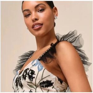 Lulus Show Stopper Cream Embroidered Sequin Bodycon Midi Dress size medium