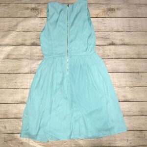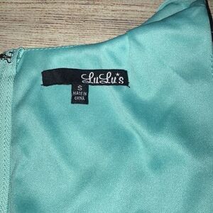 Good, preloved condition. Lulus Sleeveless Dress. Faux Wrap top. Exposed gold zipper. Lined. Small ink dots on the skirt and popped stitches, as shown. Please see all photos. 100% polyester.