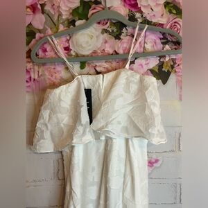 Lulus Strapless Floral Embroidered Burnout Ruffle Tiered Long Dress in Ivory size S NWT. Gorgeous dress, pictures don’t do justice on this dress.