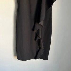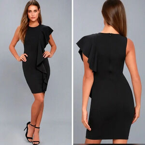 Lulus Exclusive! The Lulus Tender-Hearted Black One Shoulder Bodycon Midi Dress is all you need for a perfect night out look! Medium-weight knit fabric creates a round neckline, and a cascading, ruffled detail that shapes a one shoulder look. Sleeveless, darted bodice and bodycon mini skirt. Hidden black zipper.