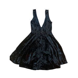 Lulus This Night Black Velvet Backless Skater Dress Sz S