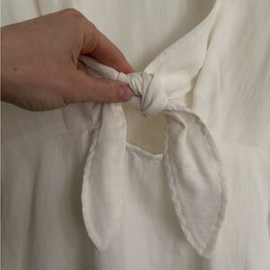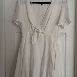 Chic white dress with a stylish tie-front design. Perfect for a bachelorette!