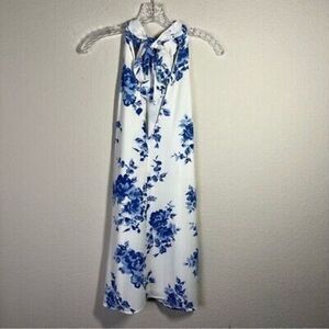 Lulus Women's Floral Halter Neck Dress Size S White Blue Tie Back Sleeveless