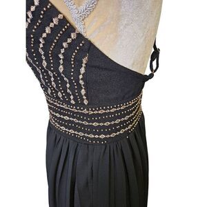 Lulus black with gold accents crossback spaghetti strap gown. Size M.