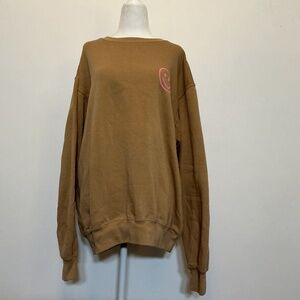 This tan Lulusimon Studio sweatshirt features bright pink lettering across the back reading “It’s Not Drinking Alone If Your Dog Is Home” and a matching pink smiley face on the front chest. Soft fleece interior with a relaxed unisex-style fit. Fun, comfy, and full of personality!