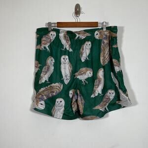 Lumberlegs Mens Owl Print Mesh Athletic Gym Shorts Size 3XL Green Lined NWT