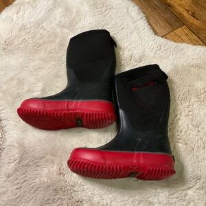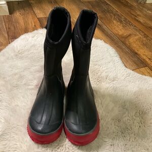 Lume Pull On Boots Kids 12 Rain Snow Waterproof JR Sleeve 2012FA-600 Black Red, have some dirt and wear good working condition, side pockets on each