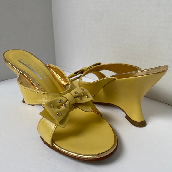Lumiani Leather Yellow Wedge 4" High Heels Size 40