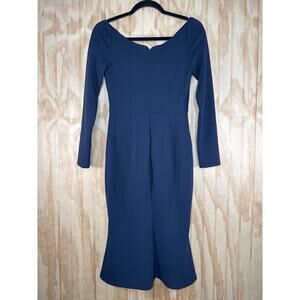 Lumier by Bariano Dark Blue Bodycon Cocktail Dress XS Quiet Luxury Romantic Midi