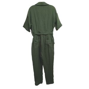 The Lumiere Boiler Long Jumpsuit in Size S Olive Cargo is a stylish and versatile one-piece featuring a V-neckline and a belted closure.