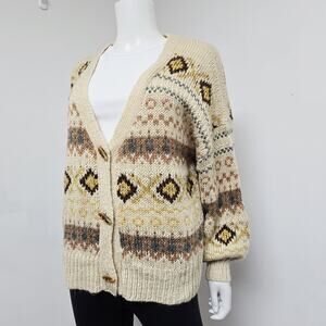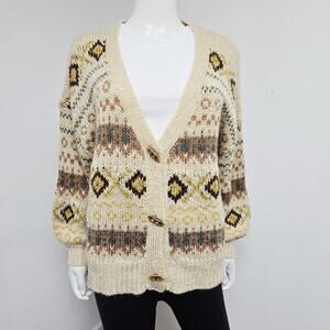 Lumiere Cardigan Sweater Womens Small Cowichan Toggle Cozy Cabin Patterned Boho