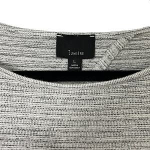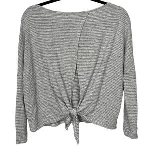 This Lumiere grey long-sleeve knit top is in excellent used condition and has no flaws! The open-back tie detail adds a touch of elegance to this comfortable and stylish top. Perfect for layering or wearing on its own.