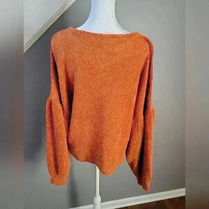 Lumiere Oversized Sweater Top Womens Large Orange Balloon Long Sleeve Fall Roomy