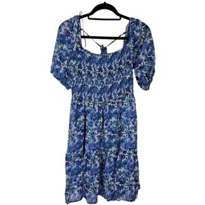 Lumiere Size Large Blue & Purple Floral Mini Dress with Statement Sleeves