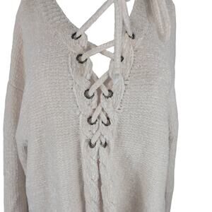 Lumiere Super Soft Cream Tie Up V-Neck Winter Warm Women Sweater L