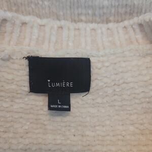 Lumiere Super Soft Cream Tie Up V-Neck Winter Warm Women Sweater L In Amazing Condition. Approximate Measurements (Flat) Length 20" Chest 23.5" Sleeve 22" Bin 6367