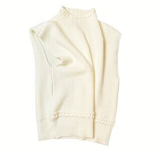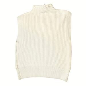 Chic white sleeveless knit sweater with a high neck.