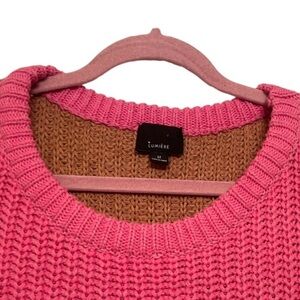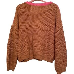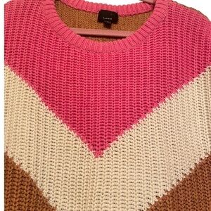 Lumiere Tan and Pink Chevron Cable Knit Sweater Size M