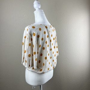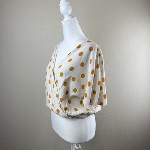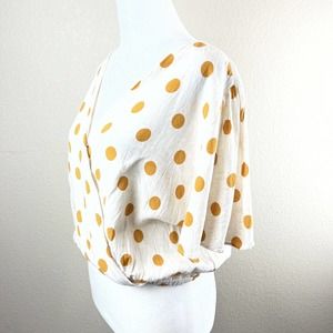 Lumiere Top Women Large Linen Blend Polka Dot Flutter Sleeve Crop Wrap Top