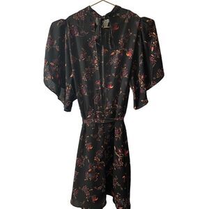 Lumiere Chiffon Floral Open Back High Neck Flutter Sleeve Dress Size Small