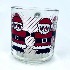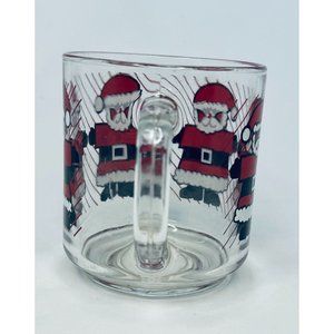 Luminarc Clear Glass Mug Red Santa Print Christmas Holiday Vintage Coffee Tea Ho