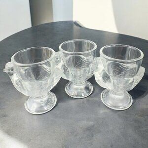 Luminarc Clear Hen Chicken Egg Cups Shot Glasses Set 3 Made In France Marked VTG