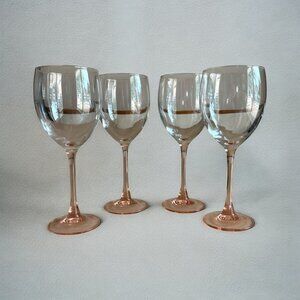 Luminarc France Pink Stem Wine Glasses Set of 4 Elegant Blush Footed Barware