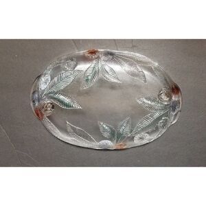 *Vintage Luminarc France Arcoroc Chestnuts Relief Embossed Oval Glass Tray Plate Dish. This large Oval pastel and clear glass serving Platter with a floral Leaf pattern are in excellent condition with no cracks or chips.