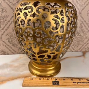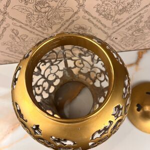 Luminary Alter Temple Jar Filigree Pattern Lid Open Bottom 13 in Metal Decor