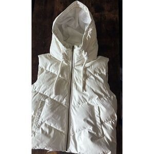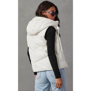 Luminary Fine Collection ALPINE FAUX LEATHER IVORY PUFFER VEST in Ivory Size L