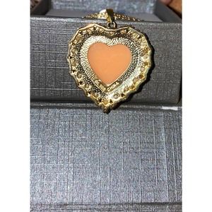 Brilliance Fine Jewelry Peach Crystal Sterling Silver and 18K Gold-Plated Heart Cameo Pendant, 18" Necklace