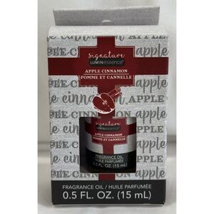 The product is a Luminessence Signature Fragrance Oil in a 0.5 fl oz bottle. It is ideal for candle making, soap making, or oil diffusing. The fragrance oil features a scent of apple cinnamon, making it perfect for adding a warm and inviting aroma to your creations.