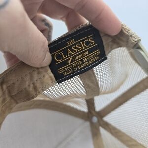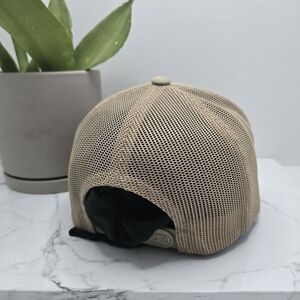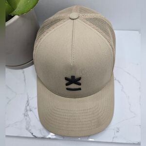 Lumino | black embroidered logo tan cream sporty trucker hat | unisex