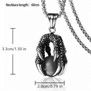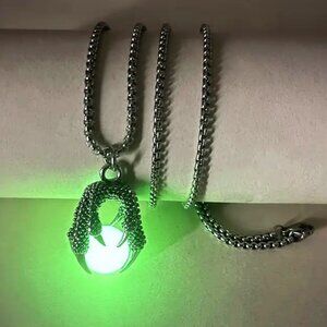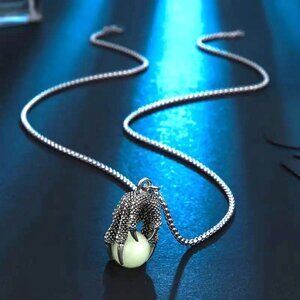 Luminous Dragon Claw Pendant Necklace Stainless Goth Punk Orb Glows Heavy Chain
