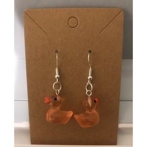 Luminous Glow In Dark Orange Resin Duck Earrings Handmade.