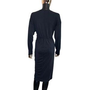 Lumiere black dress, ruched waist midi dress, NWT black cocktail dress, long sleeve work dress, LBD long sleeve, bodycon effect dress, women’s medium black dress