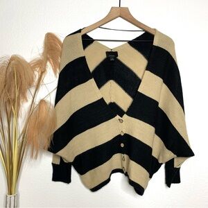 Lumière Black and beige button up deep v-neck sweater Size Small