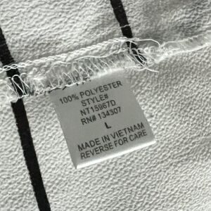 Color: White w/Black. Loose and flowy. Zipper in the back above the tails. RN# 134307. Like new & clean condition. No holes/stains/pilling/fading.
