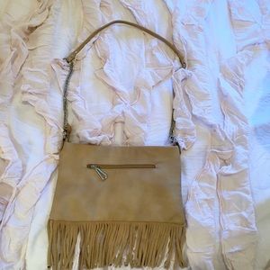 ❕Brand new purse. Given to me as a gift. Has fringe with studs on the bottom of the bag with beautiful skull and diamonds on front side, with a silver chain! Is fairly big inside and is a great bag!