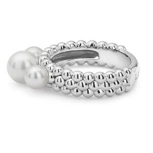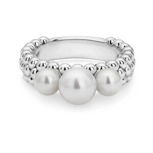 Three cultured freshwater pearls form this statement ring with sterling silver Caviar beading.
