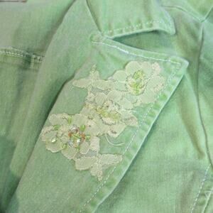 Luna Chix Jacket Womens Size L Green Embroidered Beaded Boho Hipster Blazer Y2K